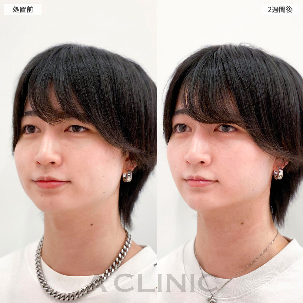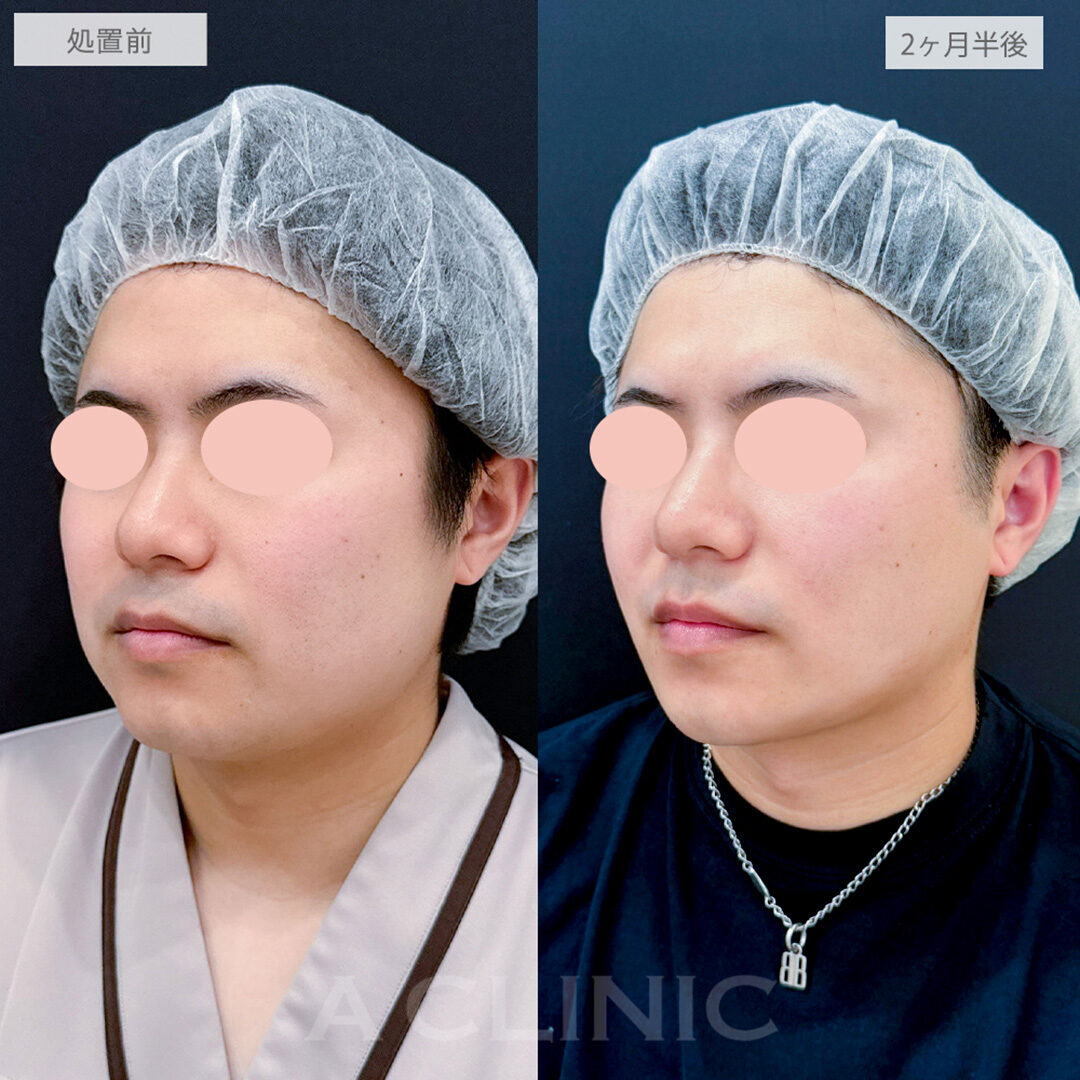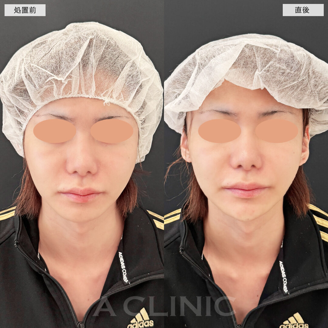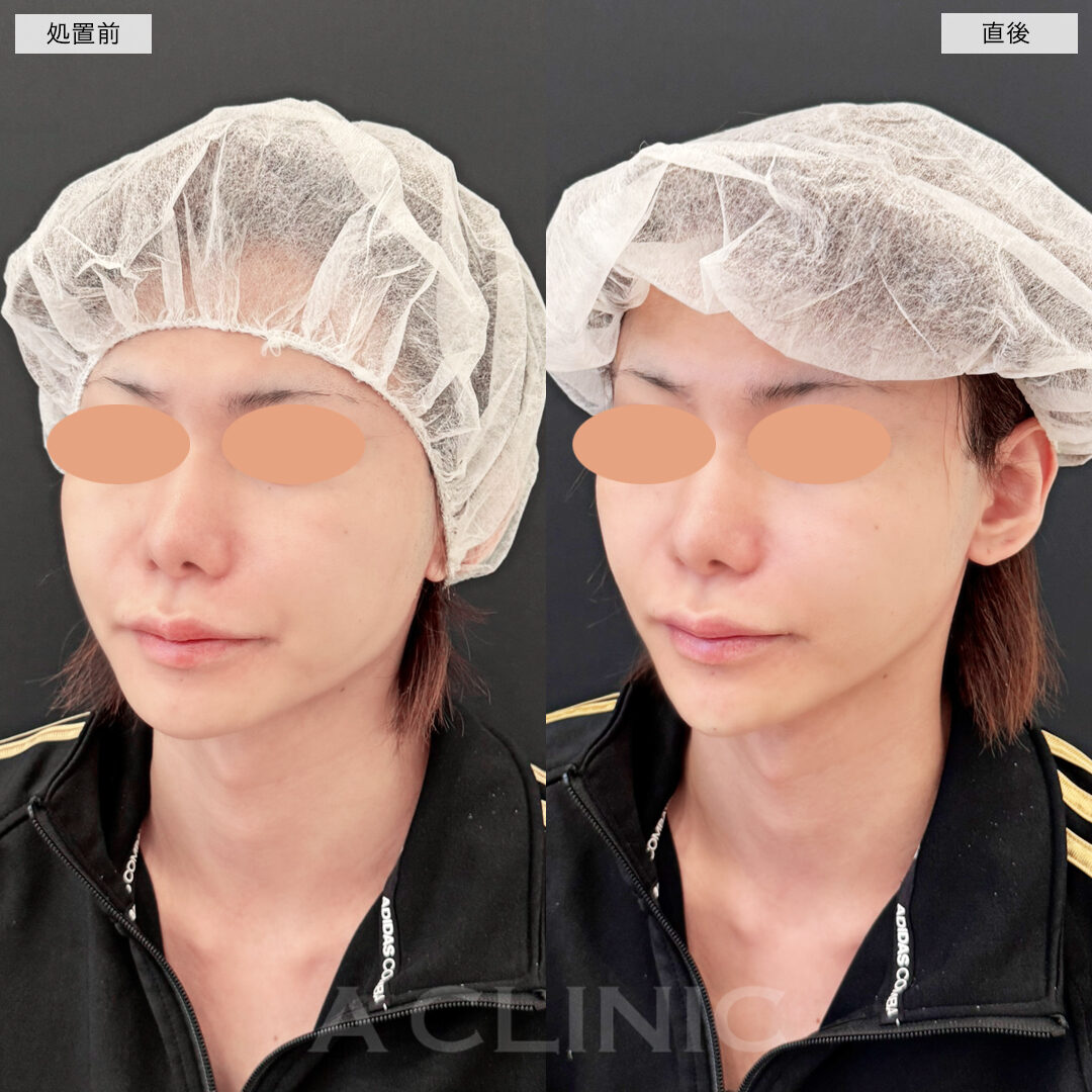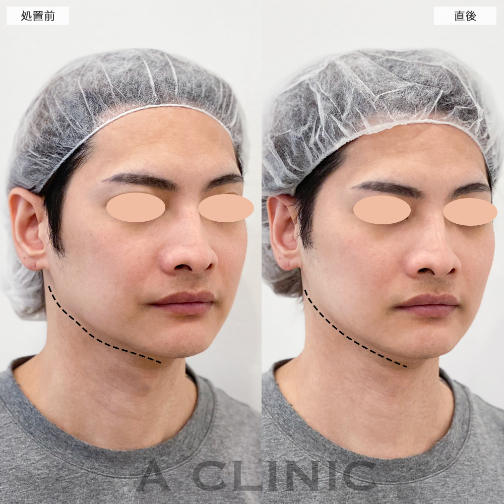 施術時間:約30〜40分程 リスク、副作用:赤み、熱感、痛み、しびれ、むくみ、内出血などが術後一時的に生じることがございます。また、稀に貧血、細菌感染症、左右差、施術箇所の知覚鈍麻、へこみ、頬がこける、たるみ、硬結、瘢痕化、色素沈着、脂肪塞栓などを生じることがございます。