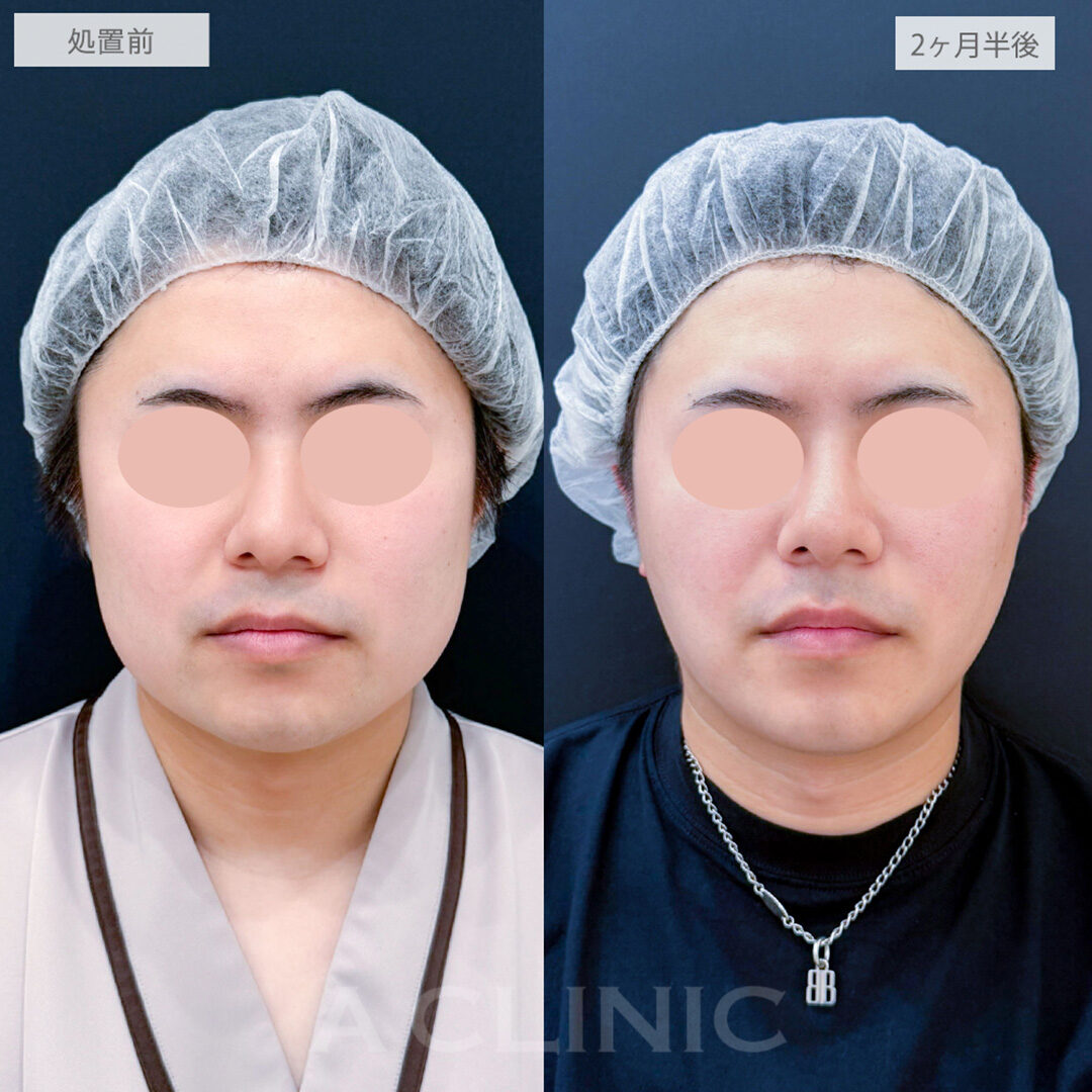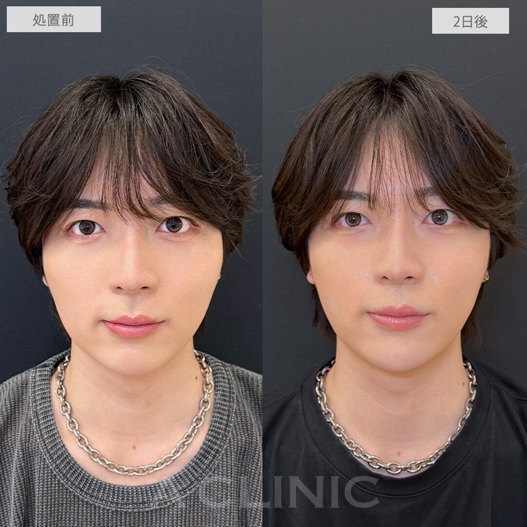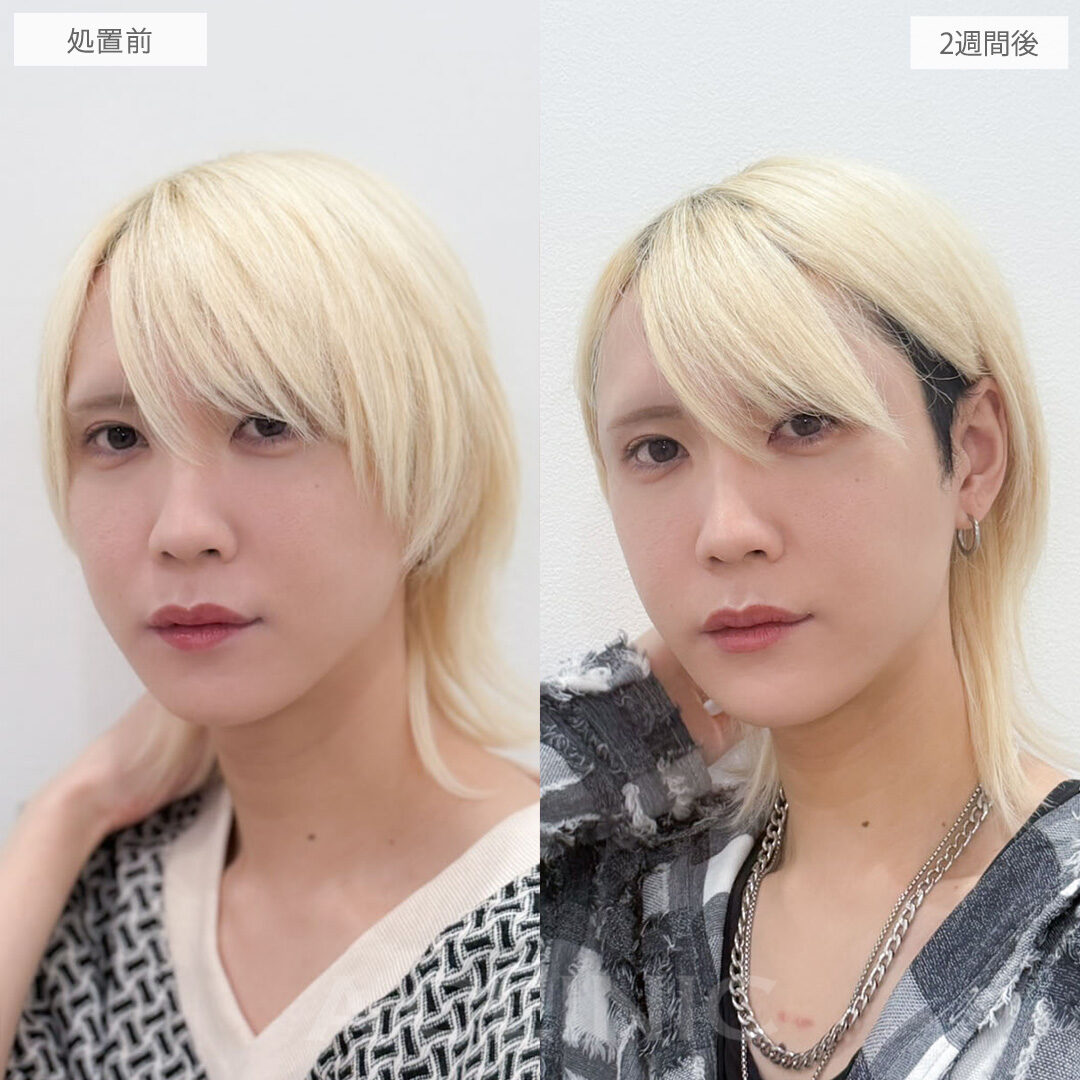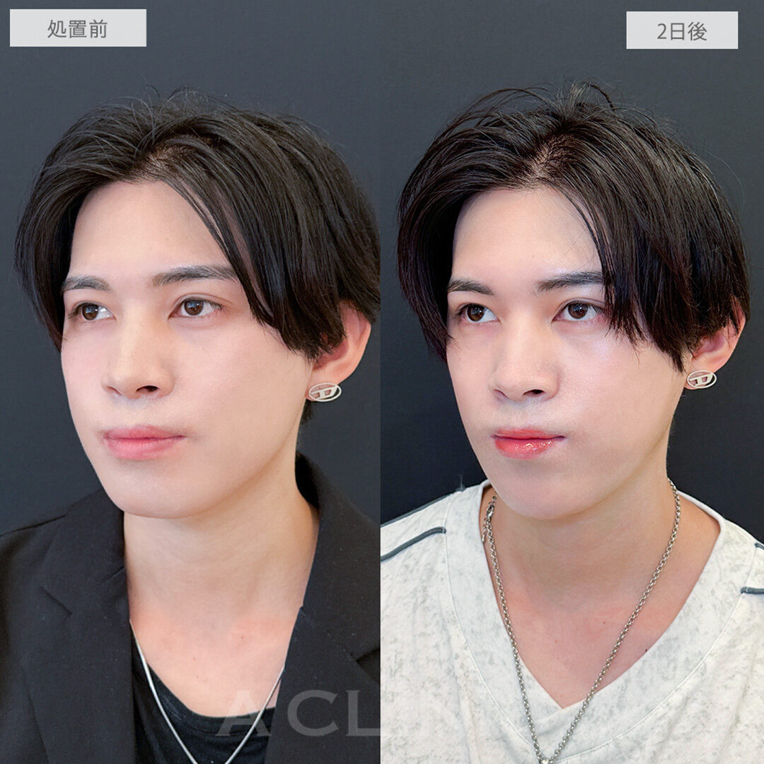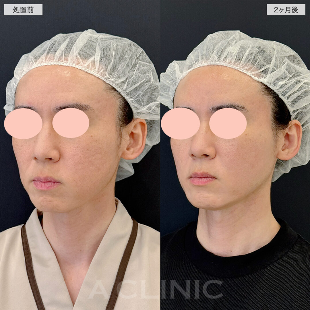 施術時間:約30〜40分程 リスク、副作用:赤み、熱感、痛み、しびれ、むくみ、内出血などが術後一時的に生じることがございます。また、稀に貧血、細菌感染症、左右差、施術箇所の知覚鈍麻、へこみ、頬がこける、たるみ、硬結、瘢痕化、色素沈着、脂肪塞栓などを生じることがございます。