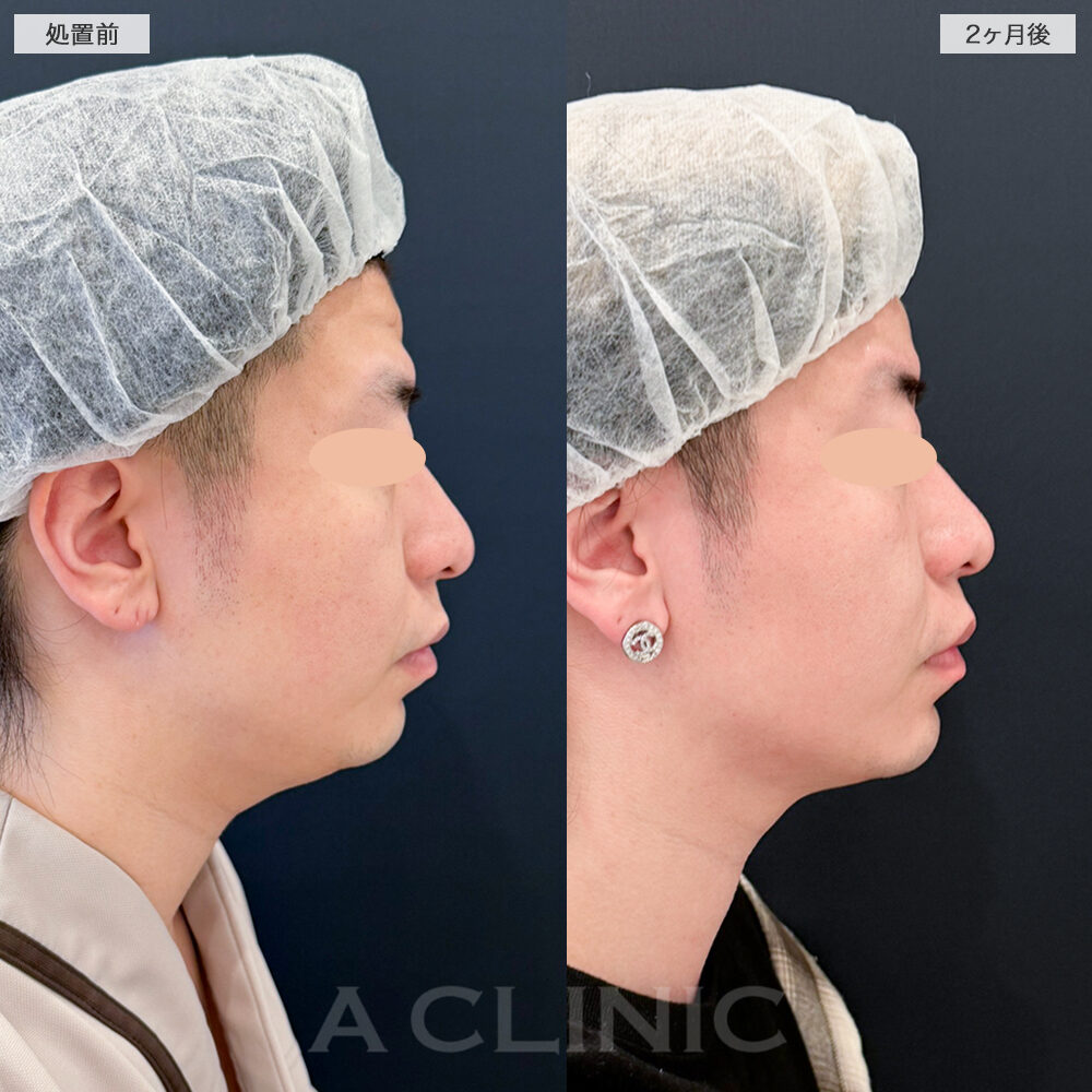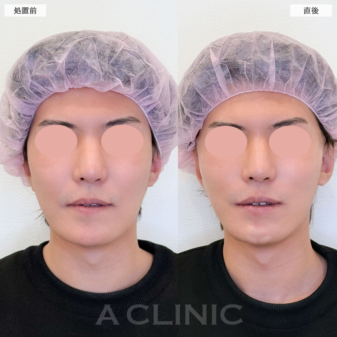 施術内容:ヒアルロン酸を皮下に注入することで鼻の形を整え、さらにボツリヌス菌から抽出されるタンパク質を鼻先を下げる筋肉(鼻中隔下制筋)へ注入し、筋肉の動きを抑制し、鼻先を下げる力が抑えられ、鼻先をあげる効果がございます。