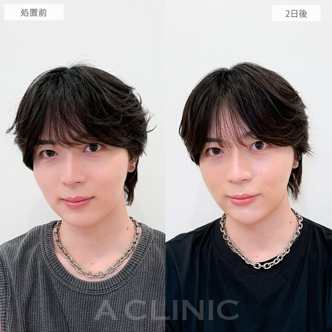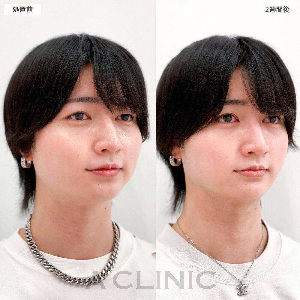 リスク、副作用:施術後に腫れ、赤み、内出血、痛み、突っ張り感などが生じることがありますが、通常は数日〜1週間程度で徐々に軽快します。また、稀にアレルギー反応、細菌感染、血管閉塞、しこり(硬化)や小さな結節が生じる可能性があります。施術後1〜2週間程度は、注入部位を強く押したりマッサージしたりすることはお控えください。