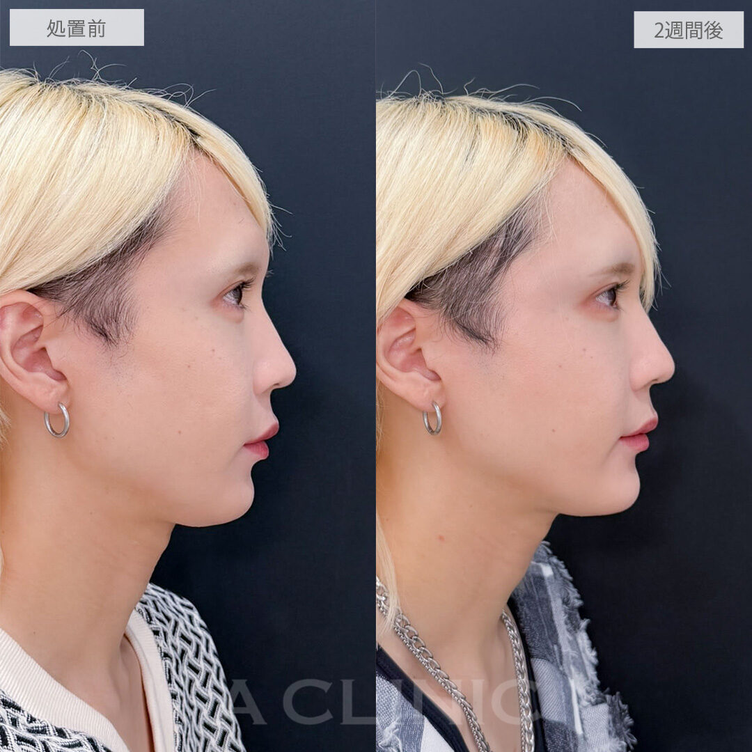 施術内容:ヒアルロン酸を用いて、鼻のライン全体をバランスよく整える鼻形成施術です。鼻根・鼻筋・鼻先・鼻柱など、顔立ちやご希望に応じて適切な箇所にヒアルロン酸を注入し、自然な高さと立体感のある横顔をデザインします。注入後には、ご希望に合わせて微調整も可能で、追加料金はかかりません。使用するのは、高密度で硬さと形成力に優れた「クレヴィエルコントア」というヒアルロン酸製剤で、細かなライン形成にも適しており、シャープで洗練された仕上がりを目指せます。