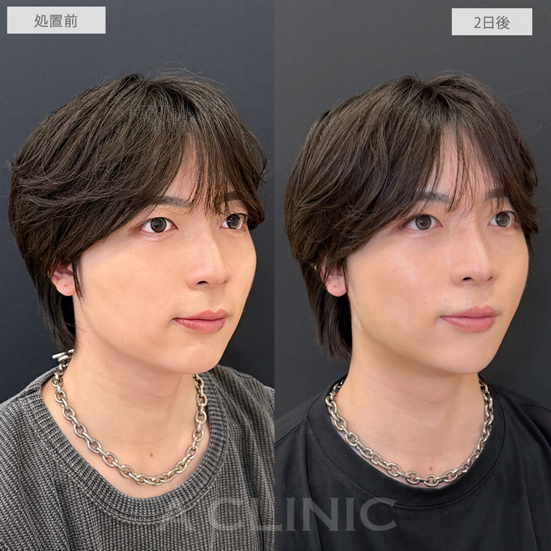 施術内容:あごの形やバランスを整えるために、ヒアルロン酸を皮下に注入する施術です。あご先にボリュームを加えることで、輪郭にメリハリを出し、Eライン(横顔のバランス)を整える効果も期待できます。顔全体の印象をシャープに見せたい方や、あごが引っ込んで見える方に適したプチ整形のひとつです。