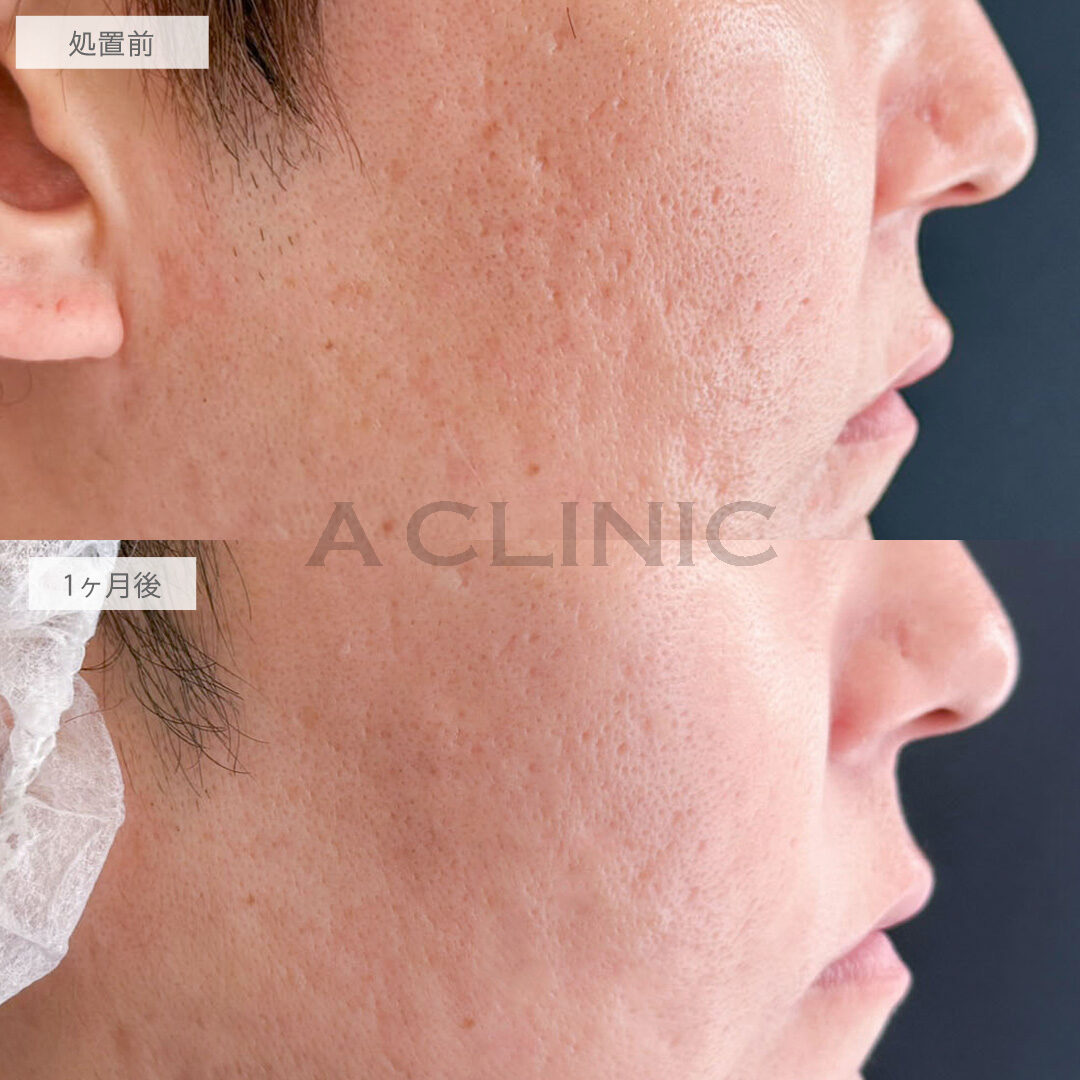 施術内容:サブシジョンとは毛穴やニキビ跡などでクレーター状になった肌の凹みを改善する治療です。皮膚の下にある固い繊維(瘢痕組織)を特殊な専用針で切ることで、肌の凹みを改善します。また、切った組織が修復される過程で肌の再生を促し、さらに凹みがなだらかになり目立たなくなります。A式美肌サブシジョンでは通常のサブシジョンの施術に加え、線維を切断・剥離した部分にヒアルロン酸を同時に注入することでクッションのような役割を果たし、再び皮膚と線維が癒着するのを防ぎます。