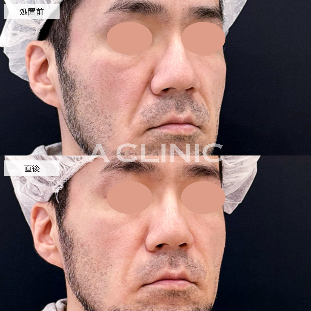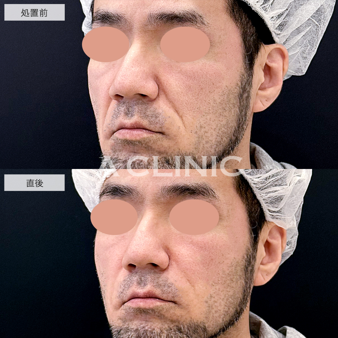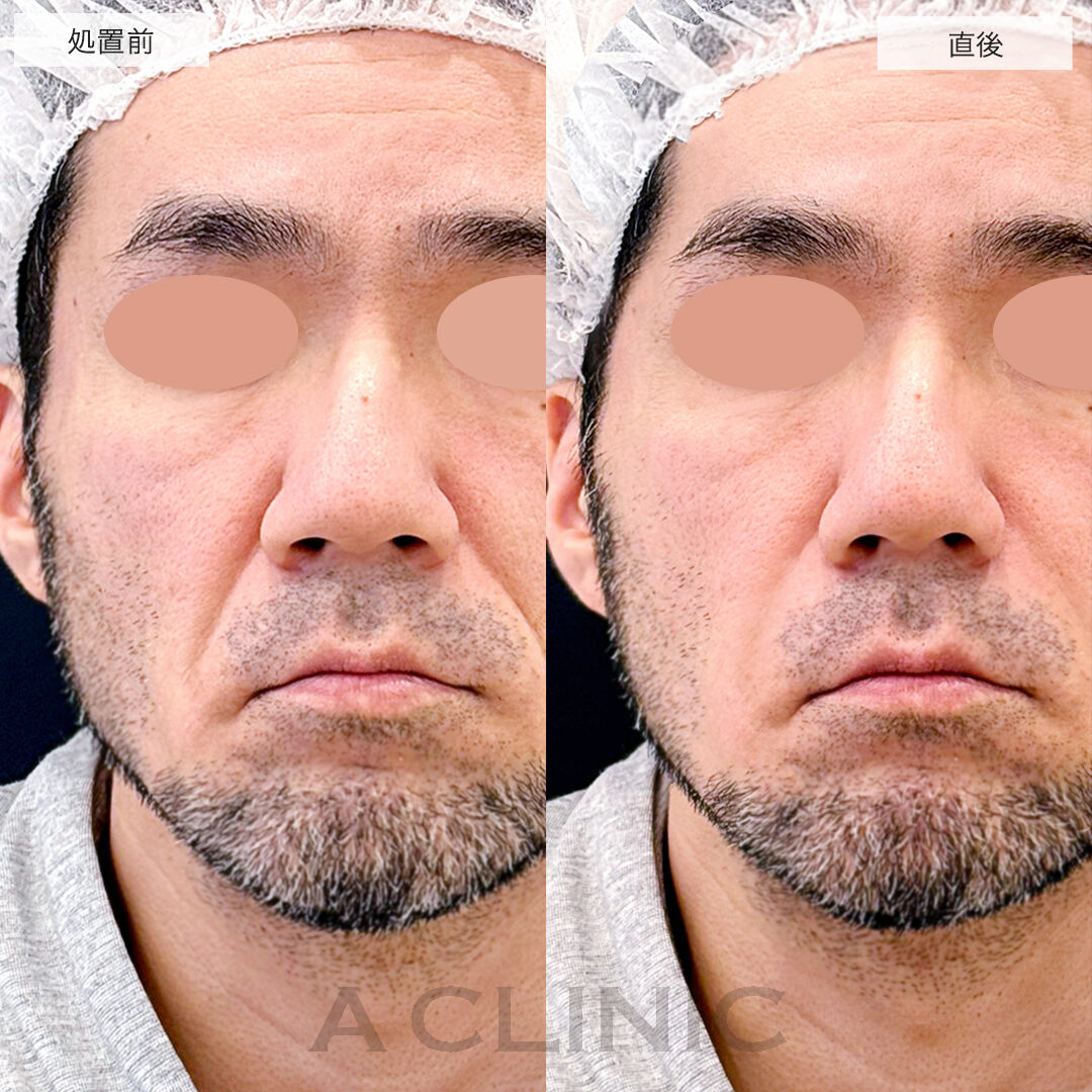 ほうれい線へのヒアルロン酸注射で若返り!余裕のある表情へ。処置前と直後の症例です(40代男性)
