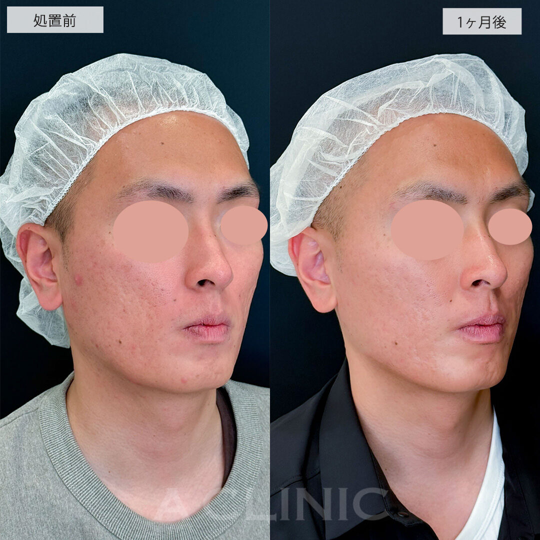 施術内容:サブシジョンとは毛穴やニキビ跡などでクレーター状になった肌の凹みを改善する治療です。皮膚の下にある固い繊維(瘢痕組織)を特殊な専用針で切ることで、肌の凹みを改善します。また、切った組織が修復される過程で肌の再生を促し、さらに凹みがなだらかになり目立たなくなります。A式美肌サブシジョンでは通常のサブシジョンの施術に加え、線維を切断・剥離した部分にヒアルロン酸を同時に注入することでクッションのような役割を果たし、再び皮膚と線維が癒着するのを防ぎます。