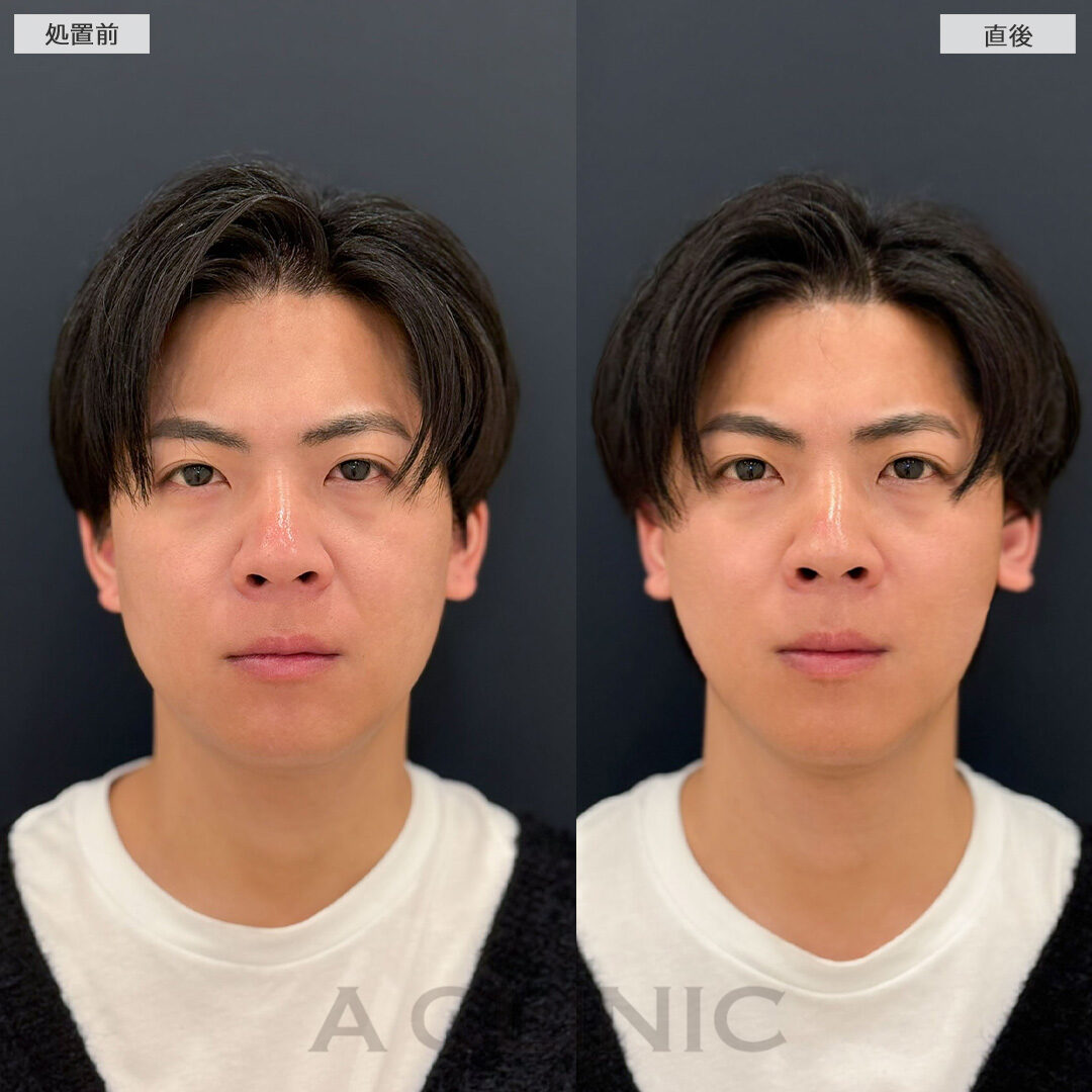 リスク、副作用:施術後に腫れ、赤み、内出血、痛み、突っ張り感などが生じることがありますが、通常は数日〜1週間程度で徐々に軽快します。また、稀にアレルギー反応、細菌感染、血管閉塞、しこり(硬化)や小さな結節が生じる可能性があります。施術後1〜2週間程度は、注入部位を強く押したりマッサージしたりすることはお控えください。