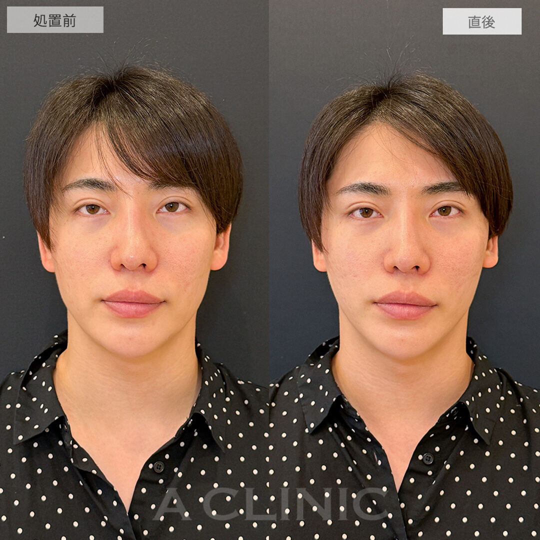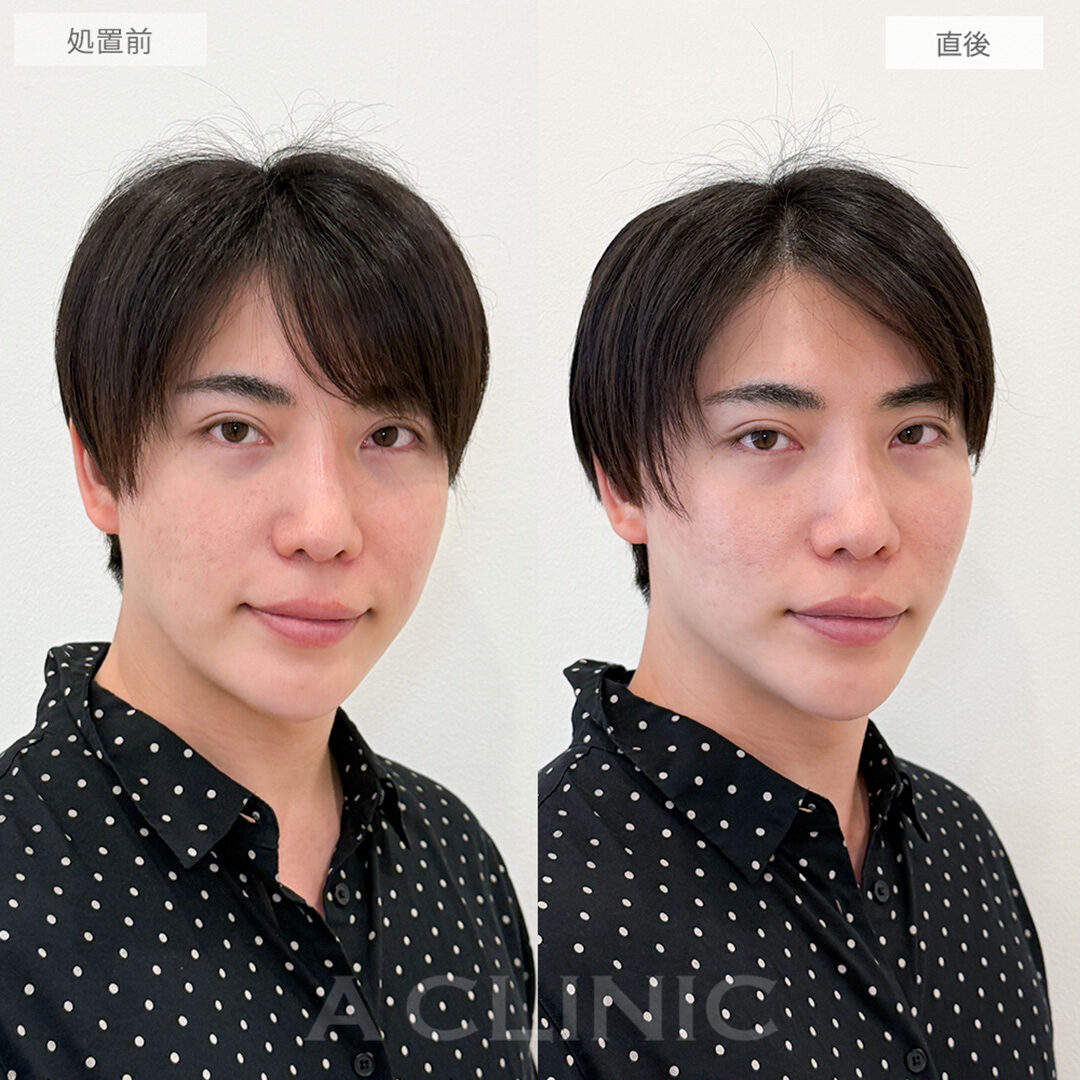 施術時間:約30〜40分程 リスク、副作用:赤み、熱感、痛み、しびれ、むくみ、内出血などが術後一時的に生じることがございます。また、稀に貧血、細菌感染症、左右差、施術箇所の知覚鈍麻、へこみ、頬がこける、たるみ、硬結、瘢痕化、色素沈着、脂肪塞栓などを生じることがございます。