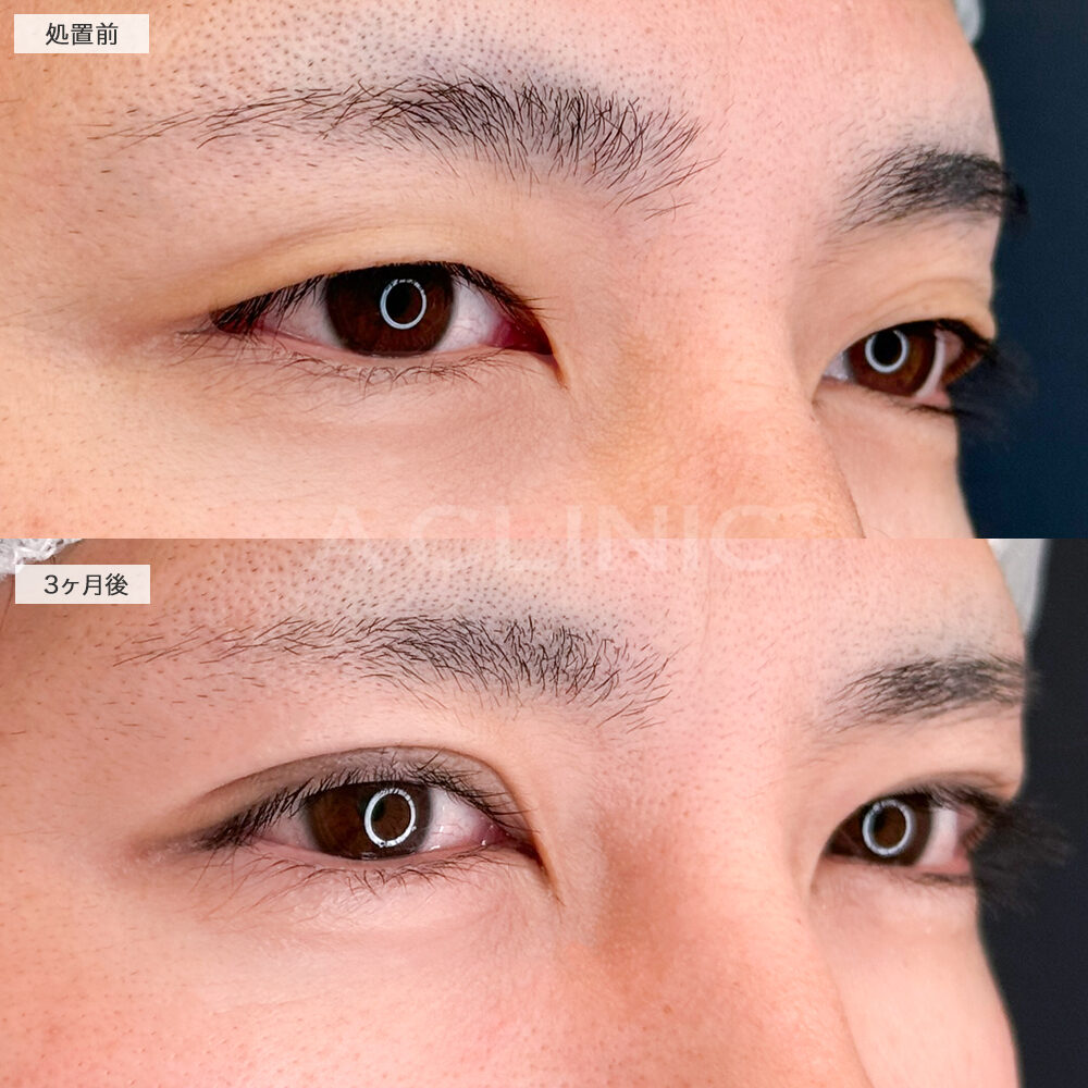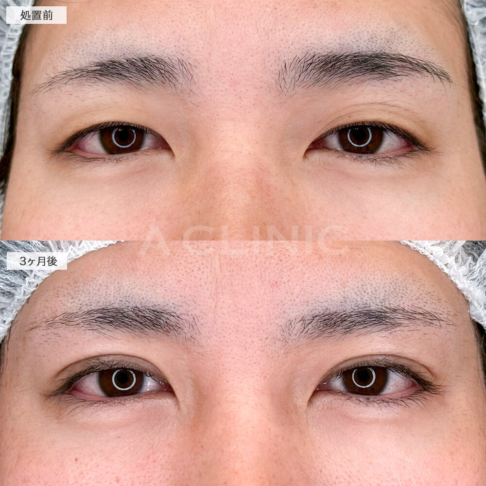 リスク、副作用:腫れ、内出血、疼痛、目がごろごろする違和感などが術後一時的に生じることがございます。また、稀に細菌感染症、左右差、重瞼ラインの消失・乱れ、縫合糸の露出、結膜腫脹などが生じることがございます。