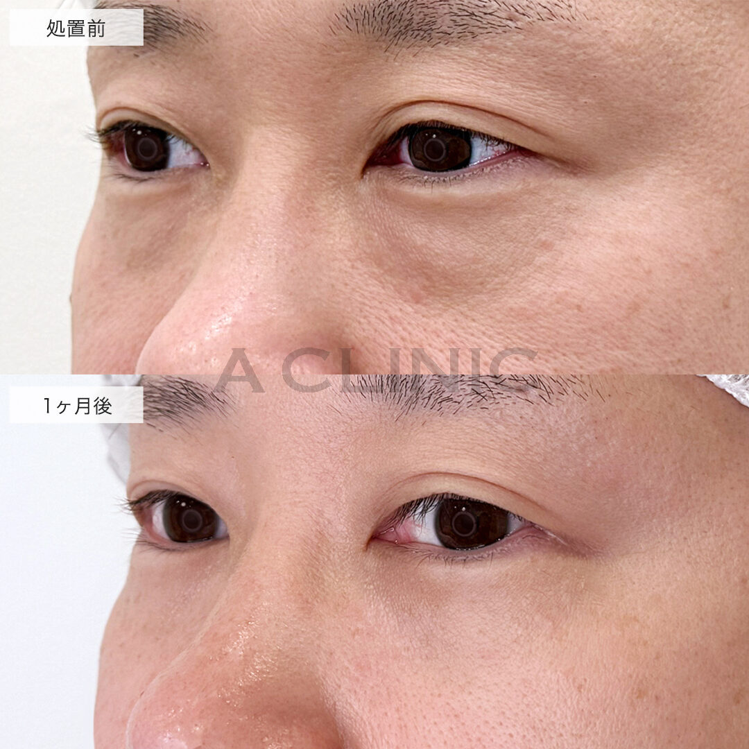 膨らみの程度や位置に応じて、1〜3か所の脂肪を的確に取り除き、目元の影を軽減することで、疲れた印象や老け感を解消します。施術は局所麻酔下で行います。