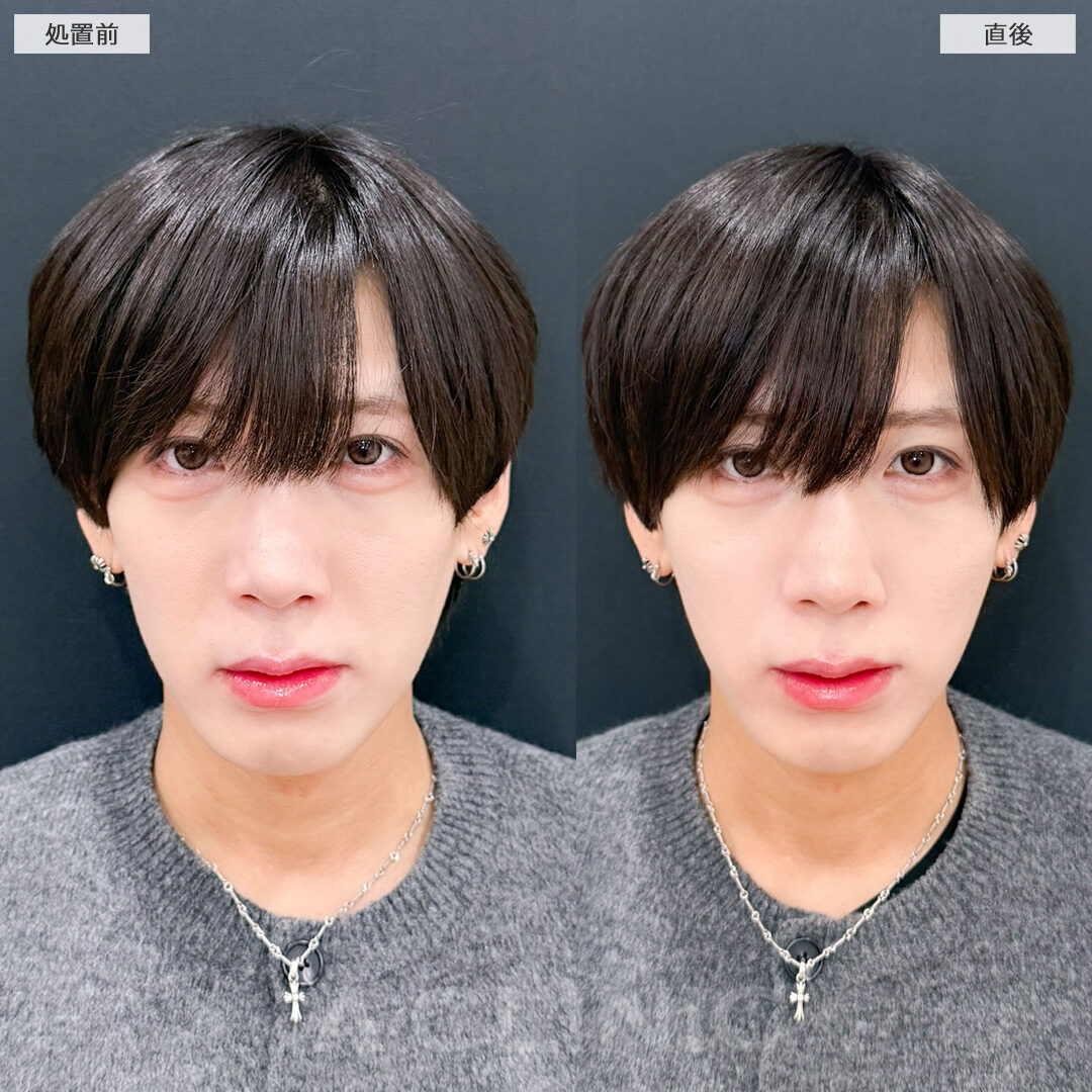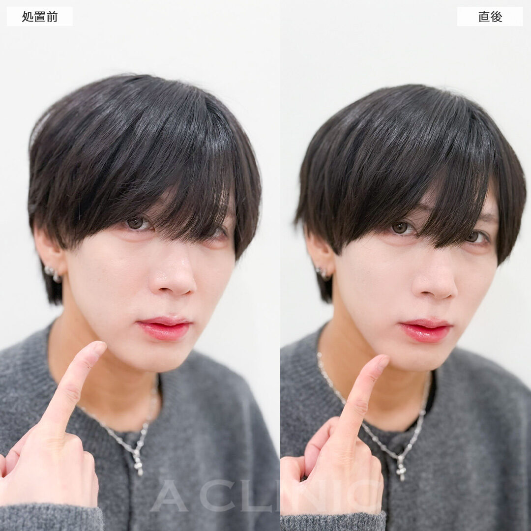 Aスレッドでたるみを引き上げ欠点のないフェイスラインに!こちら処置前と直後の症例です(30代男性)